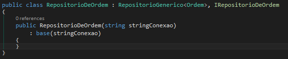 Nas interfaces de repositório são descriminadas os funções de interação com o banco de dados. As funções padrões estão na interface IRepositorioPadrao sobrando para serem adicionadas a interface funções especificas. Veja na figura o exemplo IRepositorioDeOrdem que herda a interface IRepositorioPadrao tipada pelo objeto de negocio Ordem.