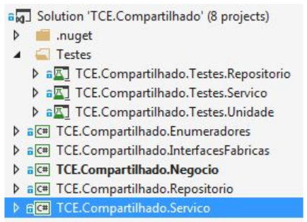Figura 13 - Estrutura do projeto TCE.Compartilhado