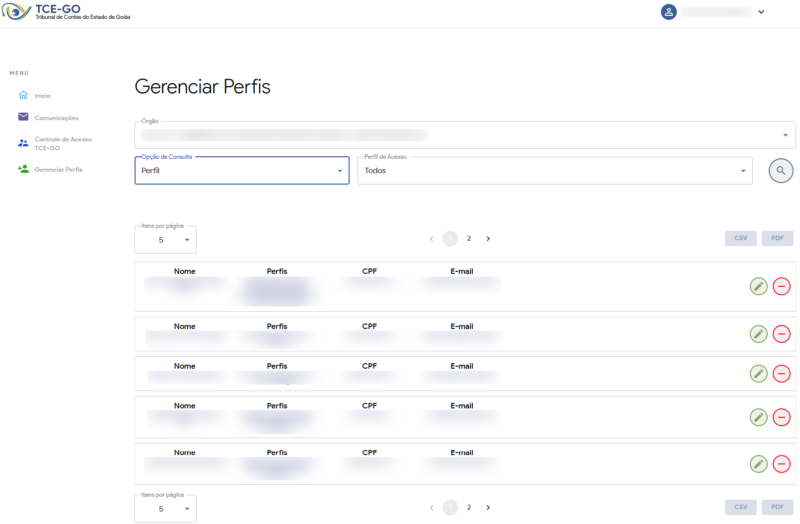 • Servidor Responsável por Triagem de Acesso de Gestores: servidor do TCE-GO responsável por realizar a triagem e deferimento de acessos para gestores dos órgãos jurisdicionados.