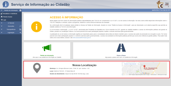 Na página inicial do portal deverá ser apresentado, no rodapé, a indicação da localização física do TCE-GO contendo as seguintes informações: