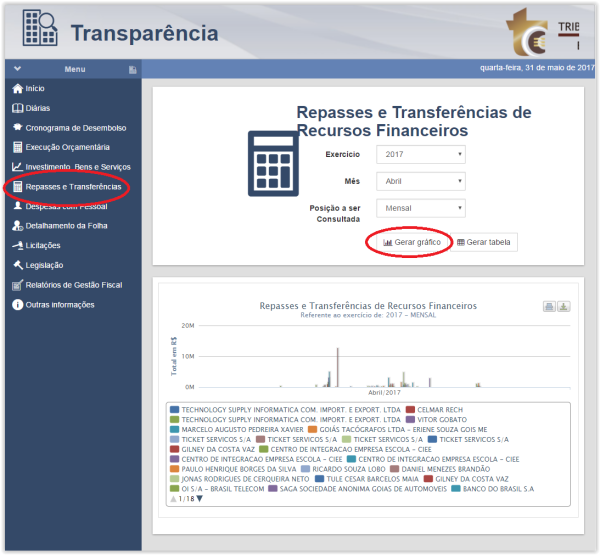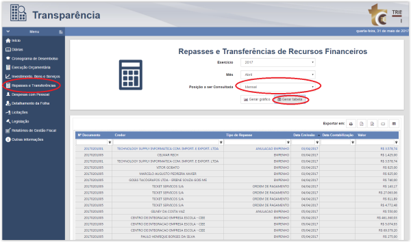 Inclusão de Relatório de Repasses e Transferências de Recursos Financeiros no Portal da Transparência.