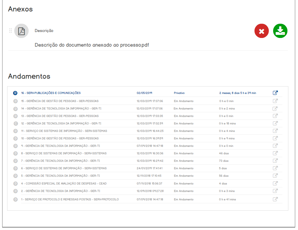 11 - Inserir/Remover anexos no andamento atual e visualizar Andamentos do processo;
