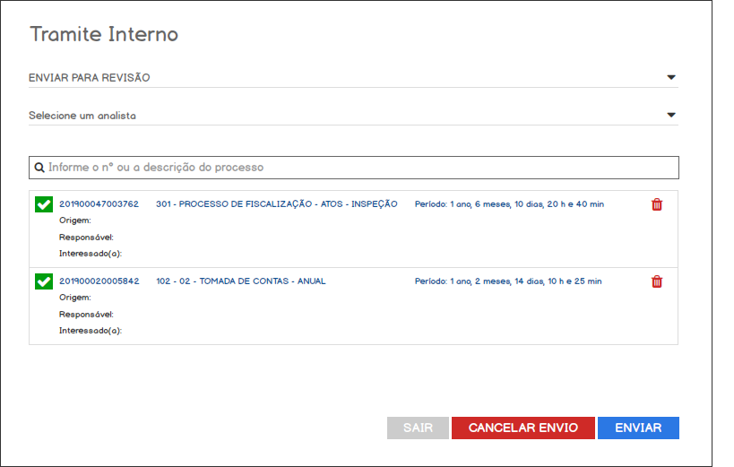 - Possibilitar tramitar internamente/externamente um ou mais processos;