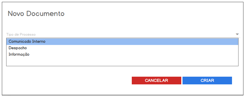 - Possibilitar criar novos documentos processuais (Comunicado Interno, Despacho, Informação), conforme os tipos permitidos para usuário;