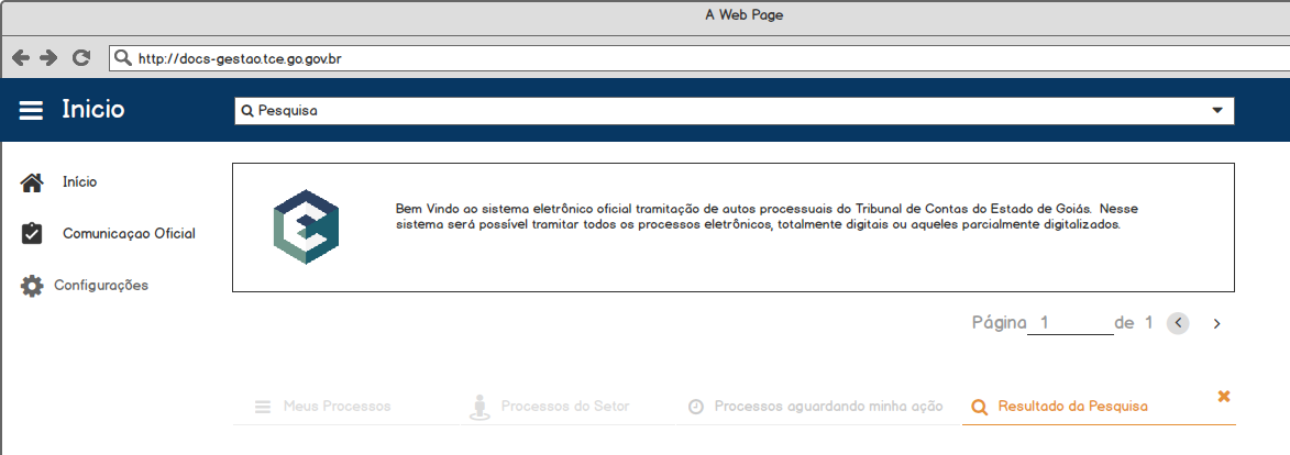 Proposta de solução para 5.1-EU1: Seguindo a estratégia de evolução dos produtos, o sistema eTCE-GO Web será desenvolvido seguindo no padrão de interface e usabilidade definido para o sistema TCE-DOCS. Conforme demonstrado no item 4.1.2. Wireframe - Protótipo deste documento.