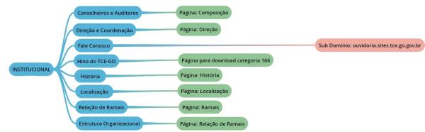 8 O que: Página; Nome: Estrutura Organizacional; http://www.tce.go.gov.br/Instituicao/EstruturaOrganizacional. Sim Atualmente a página é de conteúdo estático e não tem seu gerenciamento descentralizado pela área de negócio. Isso faz com que essa página faça parte deste escopo de reformulação e que seu conteúdo seja gerenciado pela área de negócio responsável.