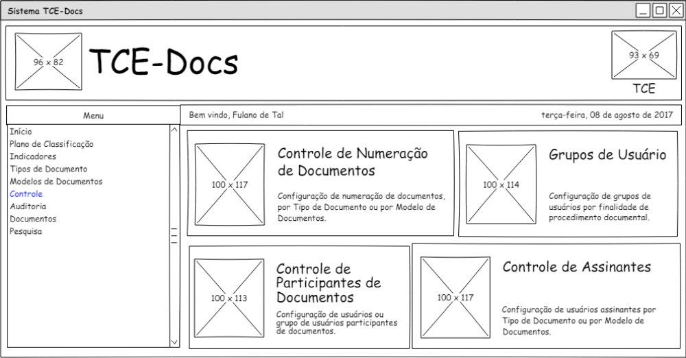 O sistema TCE-Docs deverá prover mecanismos de controle de acesso do sistema, de modo a garantir que apenas pessoas autorizadas utilizem o sistema tanto para visualizar documentos publicados quando para criar documentos ainda em etapa de elaboração. Nesse sentido, o controle de dar permissão às funcionalidades (menus e ações) do sistema TCE-Docs será gerenciado pelo sistema GPAC - Gerência de Permissões de Acesso.