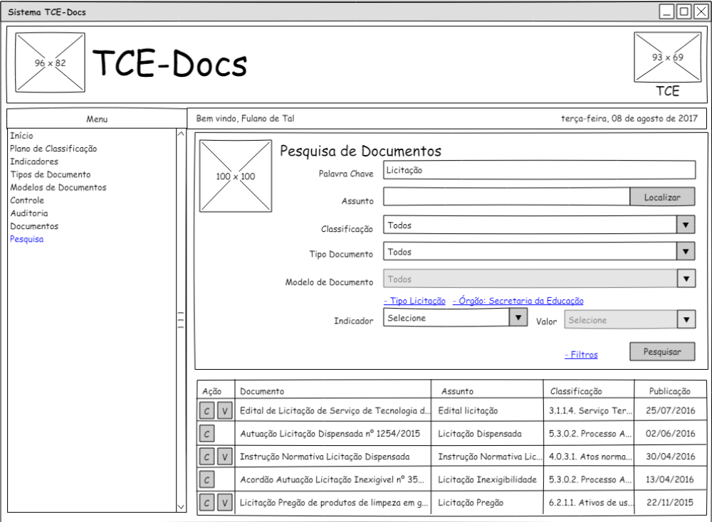 A funcionalidade de pesquisa será de acesso público, porem serão listados e disponíveis para consulta apenas os documentos públicos, isto é, apenas os documentos assinados que não estão sob controle de confidencialidade ou sigilo, que nesses casos só serão apresentados para pessoas autorizadas.